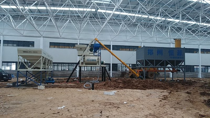 1. 攪拌主機與骨料提升機構使用的是JS1000型雙臥軸強制式攪拌機,攪拌強力、效率高、質量好;
